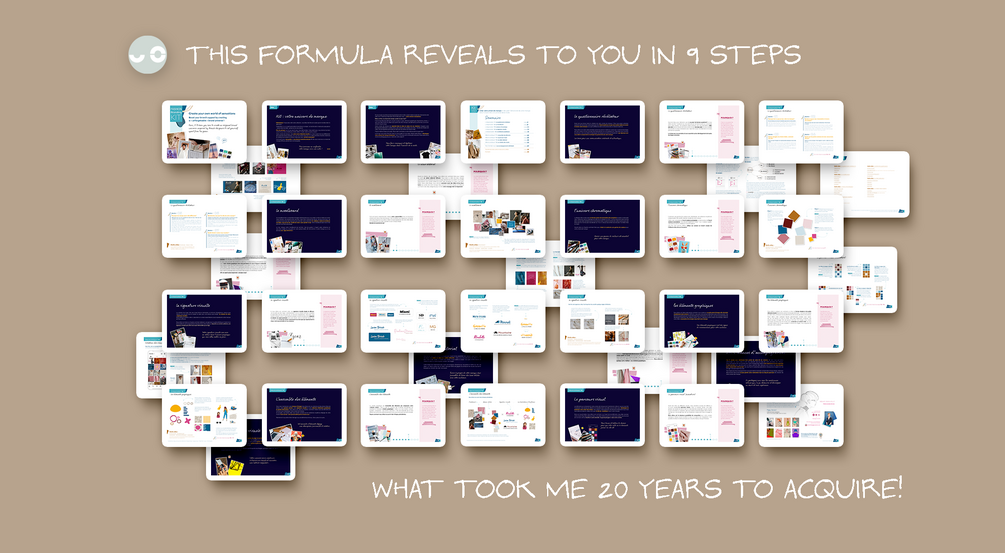 My formula " Create your own world of sensations" is unique because it is designed based on my professional expertise in the fashion and advertising industry for 20 years. It doesn't copy any other formula in the training market. It is because it is unique that it will allow you to be unique as well!This formula reveals to you in 9 steps what took me 20 years to acquire 😉